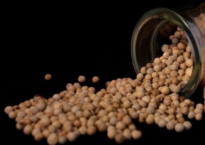 2.先將胡椒粒、1大匙鹽搗碎研磨,再放入石栗5.5顆、拇指大小的薑(去皮)搗碎研磨。