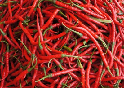 3.將大辣椒、小辣椒、蒜頭(約3粒)、紅蔥頭(約4-5瓣)、南薑(一小顆)一起下鍋,過油翻炒。