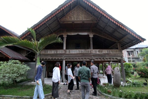 高腳屋地面層的磁磚地板與造景讓人舒適自在,雖然擺設了桌椅組但氛圍卻讓人更想席地而坐。地面層與庭院之間沒有牆的阻隔,無限延伸的空間感彷若置身大自然、在涼亭納涼。這棟高腳屋的設計巧思讓我們讚嘆不已。Juanda稍後解釋了上層屋內的空間使用原則:面對正門的左手邊是男性活動區,右手邊是女孩房,中間為雙親的臥房,底層是人群與飼養的動物聚集之處。屋內並未沒有男孩專屬的臥室,因為傳統亞齊社會的男孩會一同在集會所過夜,一天大半時間都在家屋之外活動,因此在家內所分配到的空間相對單純。
