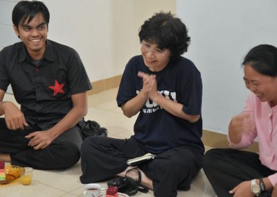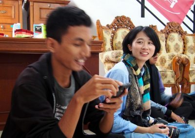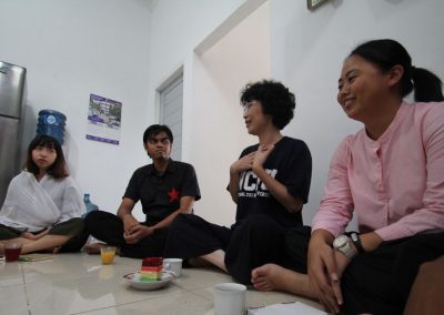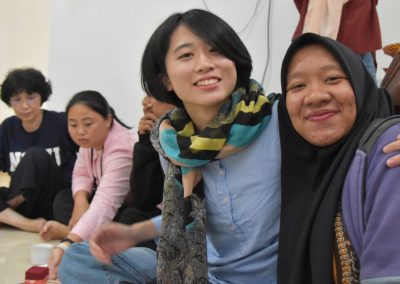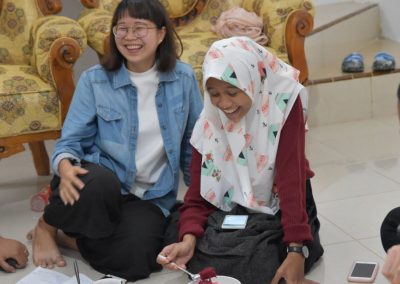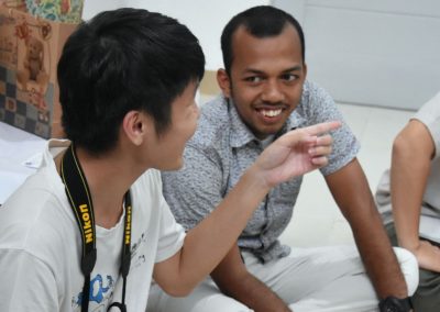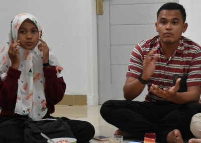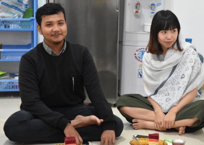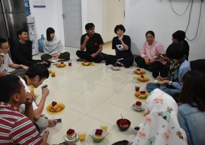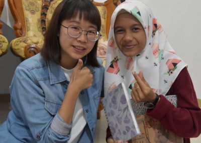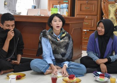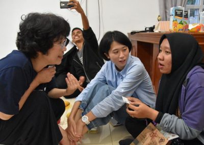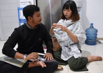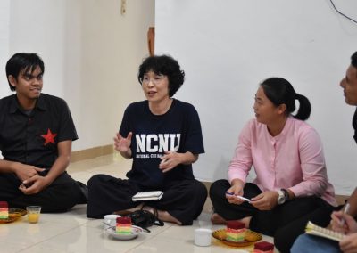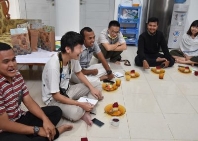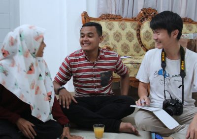 梅子悄悄地輪流坐到每位亞齊朋友的身旁,一位接著一位感謝這兩個禮拜的照顧,而他們也悄聲回應,曾以為團隊是來自臺灣一流大學的學生,對於我們這麼認真、好奇的探索感到佩服且疑惑,而團隊每個人都有自己的意見與想法,彼此激勵完成目標,師生關係也很自在但不隨便,這讓他們感到很驚訝,因為和他們在大學感受到的教學情況完全不同。這兩個禮拜,我們認識亞齊、體驗文化衝擊的同時,亞齊朋友同樣也從相處過程,感受雙方生活文化的相異。每次對話、每段情感交流的時刻,都讓雙邊距離逐漸靠近,並在旅程的最後一天,真誠分享各自最真實的一面。