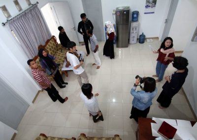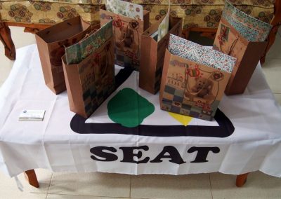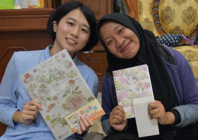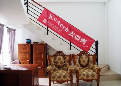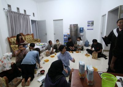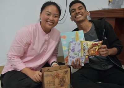 我們的最後一站是到購物中心(Suzuya Mall)採買,三位夥伴衝進大型超市內尋找購買清單上的零食,在Shally及Fatra的協助下,兩台購物車瞬間疊滿滿。梅子和喬安則前往隔壁的蛋糕店,挑選下午惜別會的蛋糕與飲料。我們在兩點多回到宿舍,將一袋袋零食及亞齊包扛回房間後就趕緊分工佈置大廳,樓梯扶手掛上了「去亞齊」的紅布條,另一面(SEAT)布條則當做桌巾,上頭擺放著我們從台灣帶來送亞齊朋友的禮物。切蛋糕、倒飲料,匆忙準備就緒後,等待亞齊朋友到來。