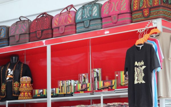 「亞齊包」(tas Aceh)是手工的刺繡包,圖案頗具民族風,為印尼政府凸顯國家多元族群意象的觀光行銷品之一,經常出現國際的展場中。亞齊包一般以金黃色搭配黑色底為經典設計,也有別於傳統、迎合市場需求的多色彩組合,在設計上有些花俏鮮豔、有些簡約精緻,琳琅滿目。我們走逛了兩個多小時在各紀念品店比價與挑選,完全無暇顧及跟在身後的Fatra,抵達亞齊第一天就注意到的亞齊包,相隔十四天後,終於如願買到。