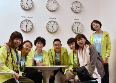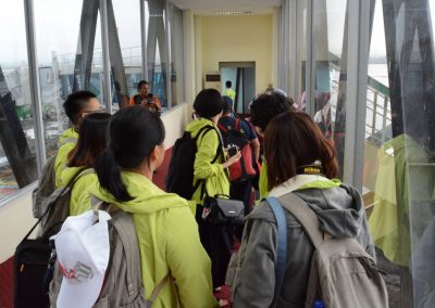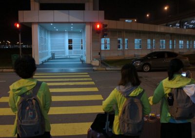 「叩叩叩」突然響起的敲門聲,韋婷連忙去應門,原來其他人都在走廊上準備好了,韋婷與婉琦匆匆忙忙的打包行李,與大夥在大廳集合碰面,天色未亮。經過昨晚的談話,大家一早便更關注調整自己的內在狀態,並且隨時拿著相機及筆記,做好紀錄的準備。等待行李託運之時,有的人寫速記,有的人以相機拍攝,投入更多的心力觀察周圍。