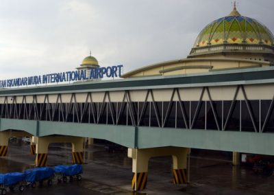 飛機緩緩落地,終於,我們到了亞齊。走在連接飛機與機場的空橋,梅子興奮地招呼大家看向機場的屋頂建築,淺綠色的圓頂像極了清真寺,讓人眼睛為之一亮,我們在此開心地留下到亞齊的第一張合照,也感受到自己已經踏入異文化。前往入境的路上,韋婷與瑋哲提醒即將走到亞齊入關處的夥伴們在紀錄之餘,別忘記將相機收起,因為他們早上太投入拍照,在吉隆坡機場出關處沒注意禁止拍照的警語,被警衛喝止。