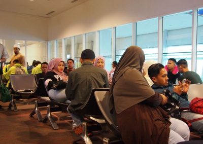 梅子、芸芸與婉琦在差不多時間分別走到海關面前,海關皺著眉或一言不發,質問三人一樣的問題:「你們來此有什麼目的,因為(單純的)觀光客不會在亞齊停留兩週這麼久的時間。」芸芸與婉琦因語言表達能力不足,加上被海關咄咄逼人的態度所驚嚇,無法反應過來。梅子則是態度堅定地一一回答海關刁鑽且帶有預設立場的問題,清楚說明我們來此地體驗伊斯蘭文化,非走馬看花的形式。氣勢凌人的海關在梅子理直氣壯的表達下態度開始軟化,最終讓我們順利通關。梅子在離開入關處後對我們說明,我們並沒有做錯事,不需要對此感到心虛,只要好好解釋即可。