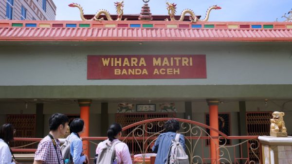 離開大伯公廟,我們來到相鄰的觀音廟和媽祖廟,廟門也都緊閉著,從窗戶往內看,絲毫不見人影。後來,在對街殯儀館裡的一名男子協助之下,順利進到廟裡參觀。在參觀這三間廟時,都不見其他香客前來參拜,夥伴們一致感到空空落落,冷冷清清的。向廟方人員詢問後,得知住在這附近的華人多以做生意謀生,和亞齊人參雜住在一起,而在亞齊有兩座南亞大海嘯後建立的華人聚落,分別是台灣慈濟建立的大愛村,跟中國政府援助的中國印尼友誼村。
