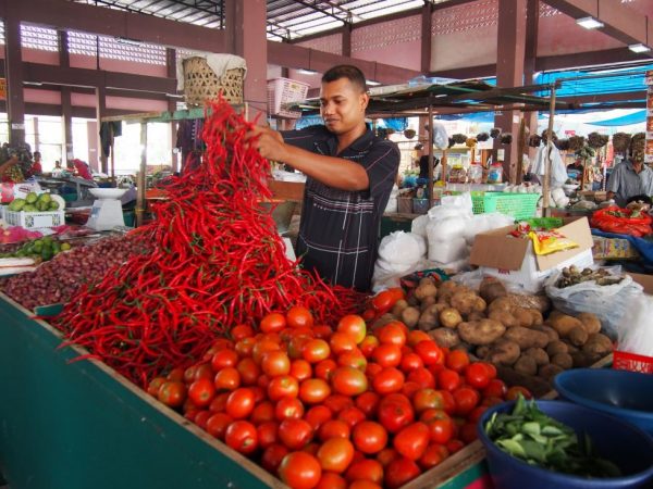 我們知道香料在烹調之前,必須先搗碎研磨,還記得Radih在做菜時,由於質地堅硬,她可是花了好大的工夫才將香料碾碎,然後進一步磨成泥狀。出現在市場上的乾燥粉末,或是新鮮香料泥,正是為了沒有足夠的時間與心力處理香料的客人服務。特別是販售新鮮香料泥的攤子,老闆會依照客人的需要的分量與比例,將不同的香料泥一杓一杓地舀塑膠袋裏,採買者回到家後,便可直接進行料理,相當方便。市場裡香料的「多樣型態」,在在說明了確實是亞齊人烹煮料理不可或缺的調味料。