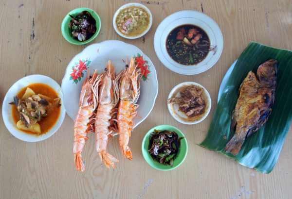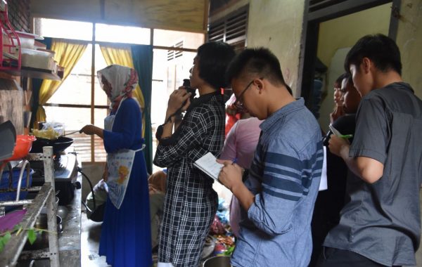 Ibu Juwita準備的料理共有四道:「蝦咖哩」(kari udang)、「蔬菜湯」(kuah pliek)、「恩餅」(kerupuk emping)、「炸鹹魚」(ikan asin)。料理過程中,我們發現為求方便快速,Ibu Juwita運用果汁機取代傳統的研磨器具,顛覆了我們之前對於「研磨香料」的想像。因為在市場隨處可見販賣研磨器具的店家,而Radih做料理時是用杵與缽一一細磨香料,讓我們對於研磨香料仍停留在「傳統手工製作」的想像之中。此次進廚房,夥伴們最大的衝擊是「真實感」與「立體感」。事後婉禎表示,去店家探查時,寫著筆記的同時卻不太相信一道料理是由這麼多香料組成,但親眼看到調理過程,才知道「真的」有這麼多。喬安則提到,在台灣看Radih下廚不太明白香料何以經過烹煮變成料理,但不斷摸索對香料較有概念之後,再看亞齊媽媽下廚,竟有「自己親手做」的錯覺。